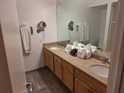 Experience the vacation life at Vista Mirage Resort, located in the famous desert town of Palm Springs. Visitors looking to buy, sell or rent timeshare resales will enjoy the two swimming pools, two whirlpools, a tennis court, and exercise equipment. In this vacation haven, you'll find plenty to keep you busy year-round. Winter activities range from playing golf at numerous courses close by to taking an aerial tram up the mountain for some cross-country skiing. The resort's central location places you near downtown museums, shops, art galleries, restaurants, and nightlife. In the summer, beat the heat at Oasis Water Park.